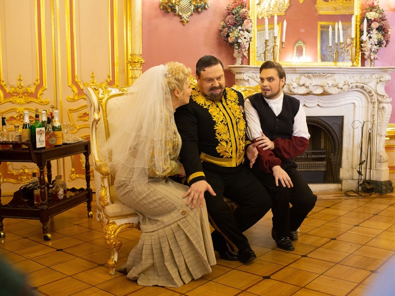 Музыку к спектаклю написал главный капельмейстер «Паласа» чех Вильгельм Шпачек – талантливый дирижер и ценитель русской композиторской школы, сумевший ловко вписать известные музыкальные темы – от народных «Ах, вы сени мои, сени!» до арий Чайковского – в свою партитуру.