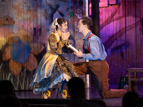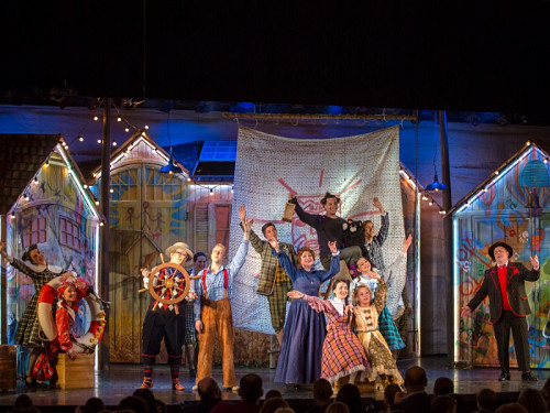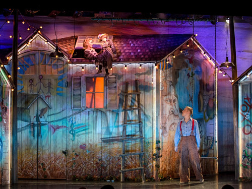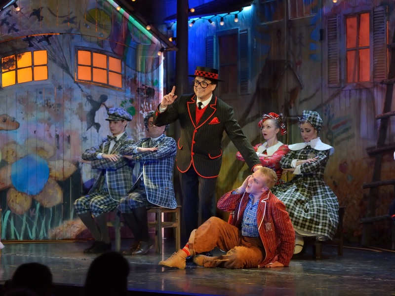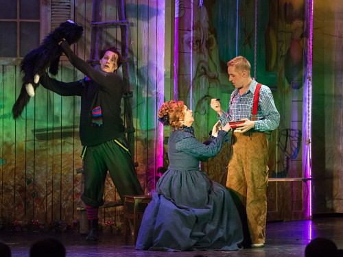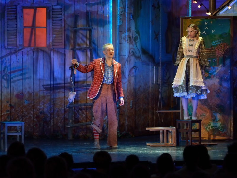 Режиссер Анна Осипенко обращается не только к детям, но и к родителям и насыщает спектакль философскими подтекстами, несколько размывая адресную аудиторию. Начавшееся было действо прерывает – в буквальном смысле – актер, вступающий с залом в диалог и предлагающий собравшимся вспомнить детство, когда вновь зазвучит музыка и распахнется занавес, именно он появится в образе Тома, открыв условную дверь в собственное прошлое.